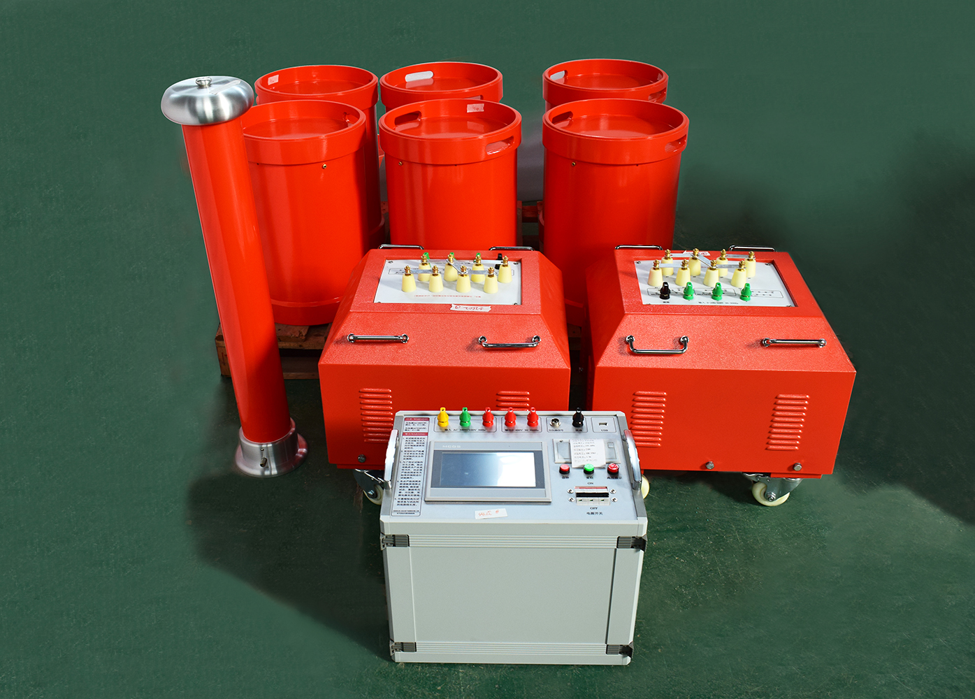 按 “變頻電源→勵磁變壓器→串聯電抗器→被試電纜→電容分壓器→接地” 的順序,將所有設備串聯成閉合主回路;同時把電容分壓器的電壓信號接入變頻電源(用于實時監測電壓),且所有設備外殼、電纜非試驗相均需可靠接地(接地電阻≤4Ω),接線后需雙人交叉核對,避免錯接、漏接。